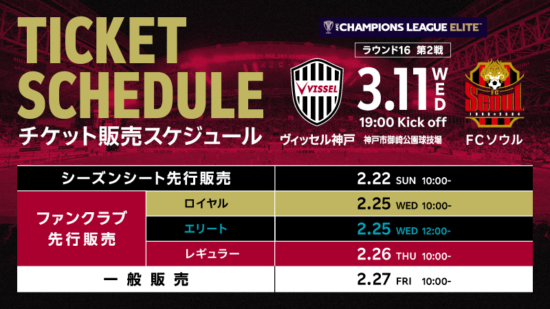 3/11(水)「AFC Champions League Elite™ 2025/26」ラウンド16チケット販売のお知らせ